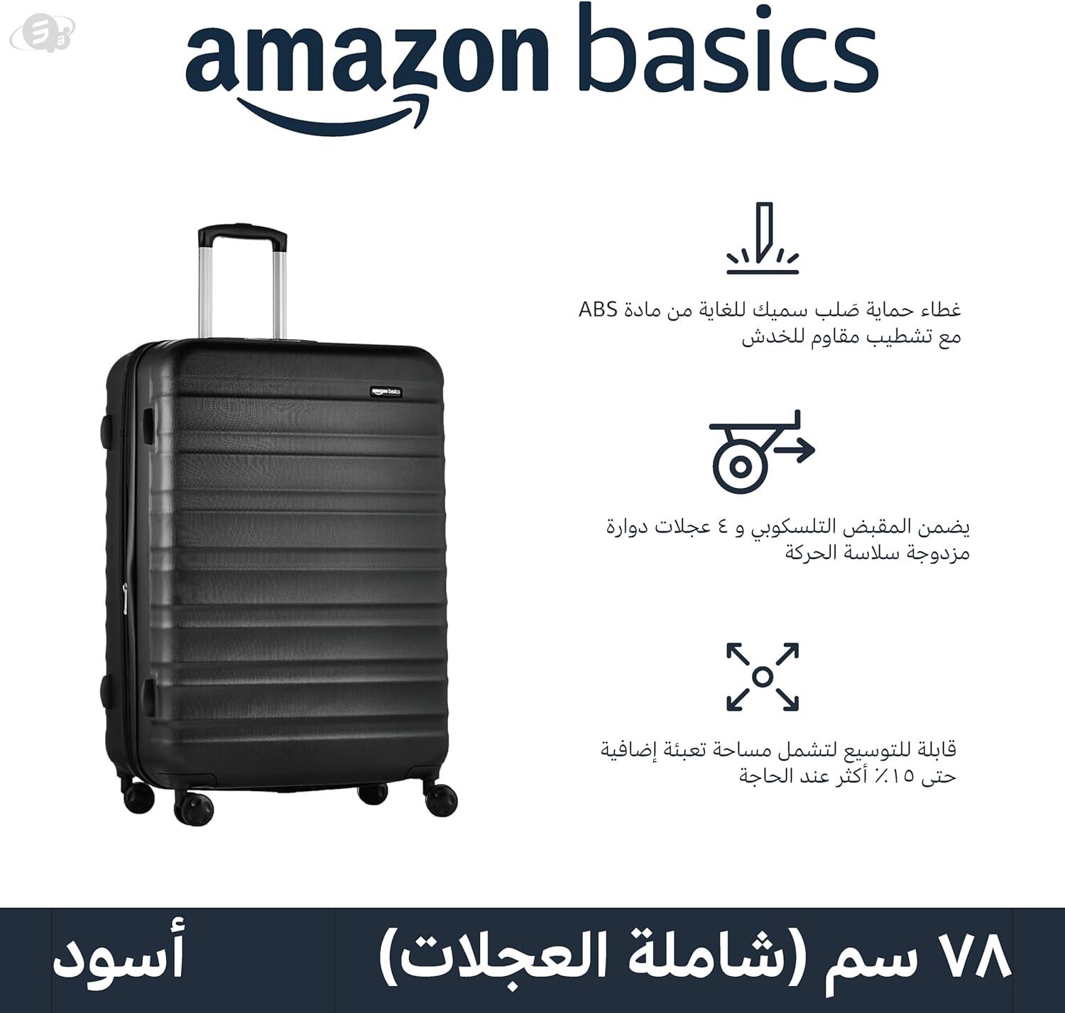 Basics Hardside Spinner Luggage- 28 inch (71cm), Material: ABS, Black