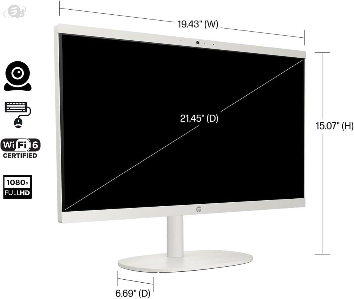 HP 2022 All-in-One Desktop, 21.5" FHD Display, Intel Celeron J4025 Processor, 8GB RAM, 256GB PCIe SSD, Webcam, WiFi, HDMI, RJ-45, Wired Keyboard&Mouse, Windows 11 Home, White