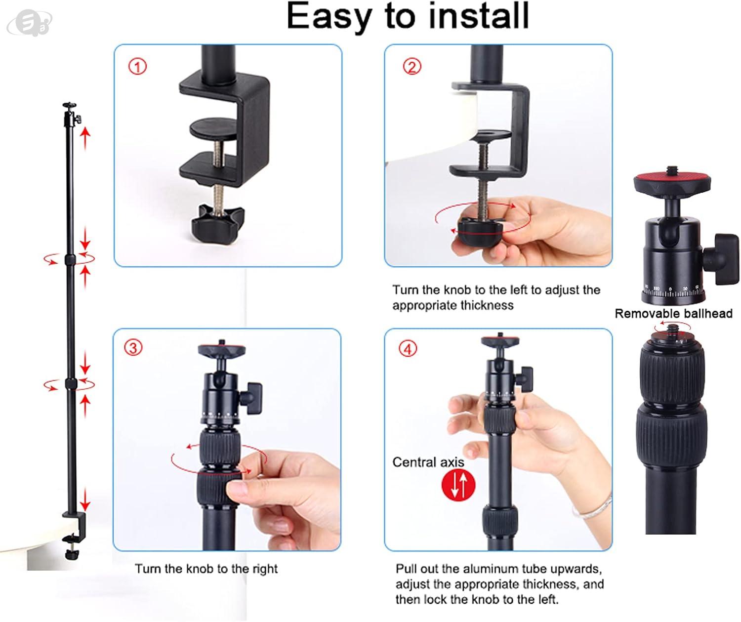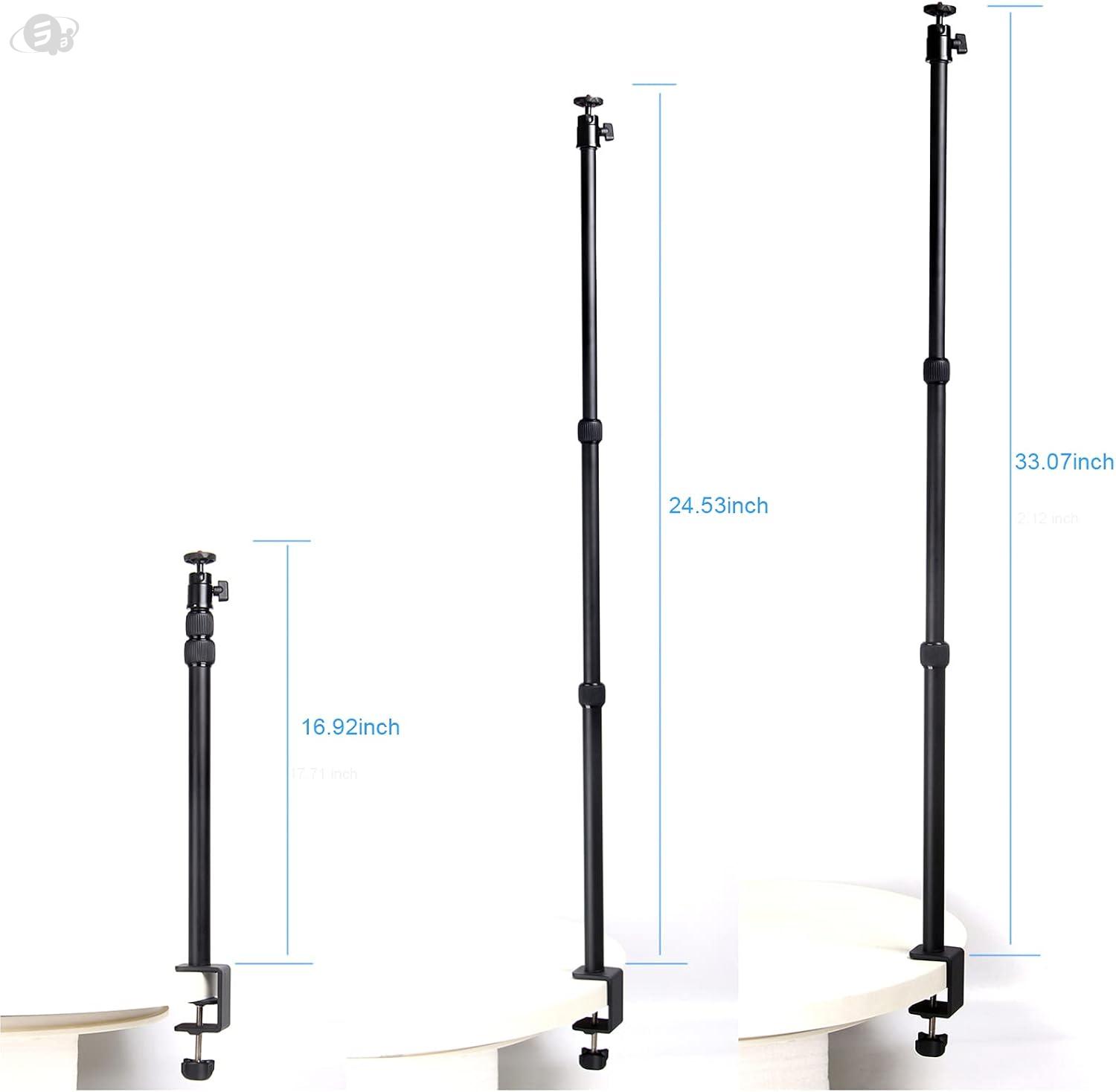 【Adjustable Desk Mounting Stand】 The desktop light stand provides a height adjustable range from 16.92 inch to 33.07 inch with 2 sections telescopic extending poles for easy portability and compact storage.